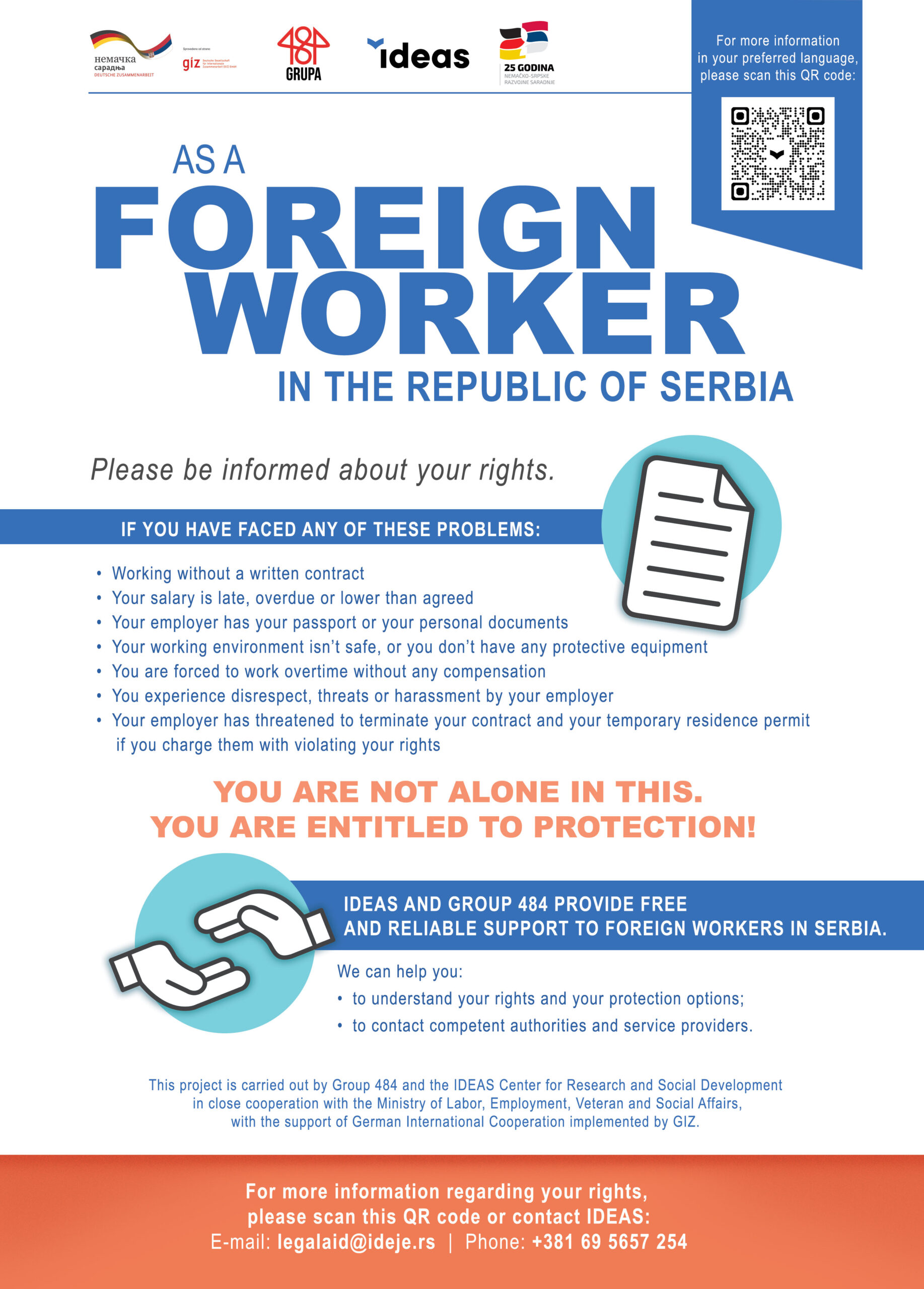 Your rights are protected by the laws of the Republic of Serbia. Still, it is important to know that the scope of those rights depend on the type of your work engagement: e.g. do you have an employment contract, do you work in seasonal jobs or you are assigned to work in Serbia by a foreign employer.
